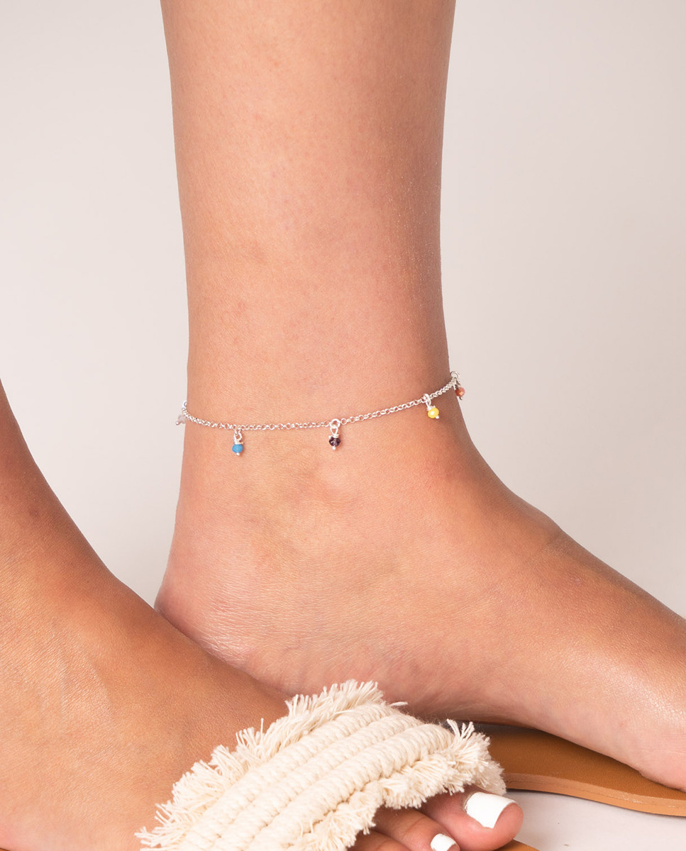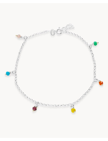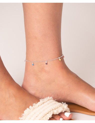 Tobillera de colores colgantes en cadena de plata de ley 925