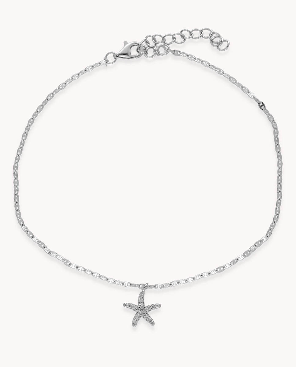 Tobillera estrella de mar de plata de ley 925 bañada en rodio