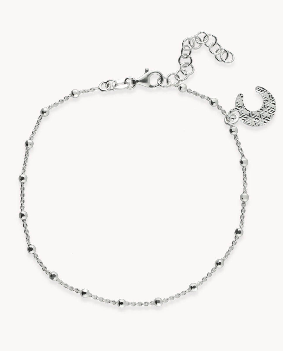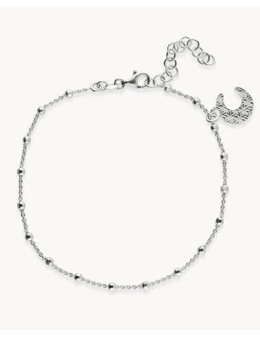 Pulsera tobillera de plata de ley 925 con colgante de luna de 12 mm de alto, cierre de mosquetón y largo de 21 cms más 4 cms de alargador. Decora tus tobillos con nuestras originales tobilleras de plata.
