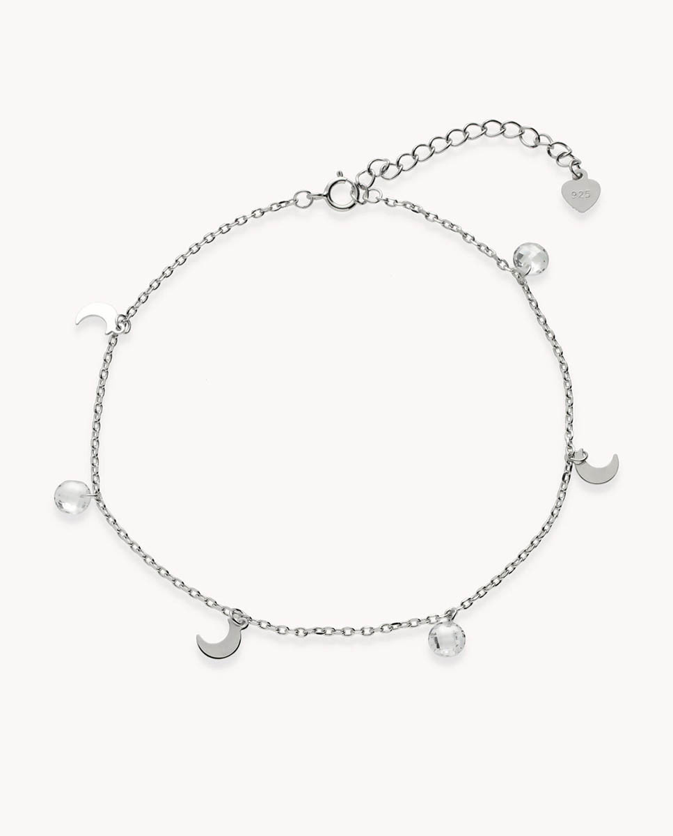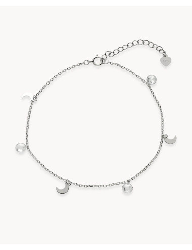 Tobillera luna y circonitas de plata de ley 925 bañada en rodio