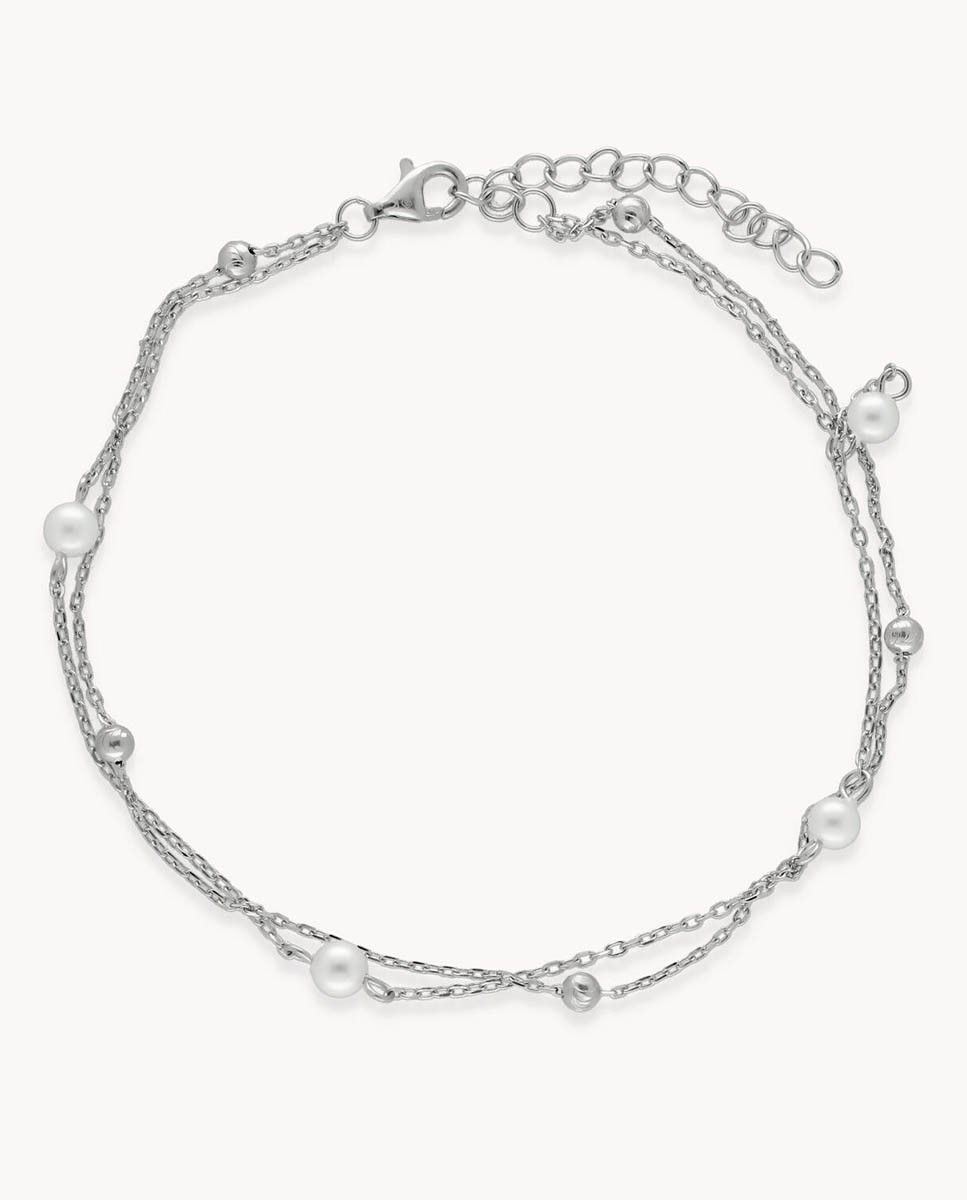 Tobillera perlas en cadena de plata de ley 925 bañada en rodio