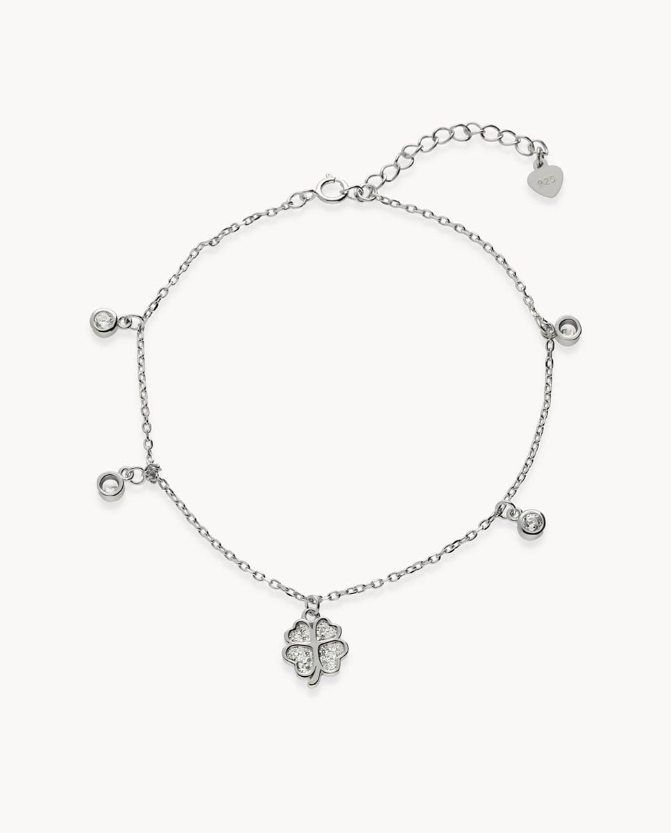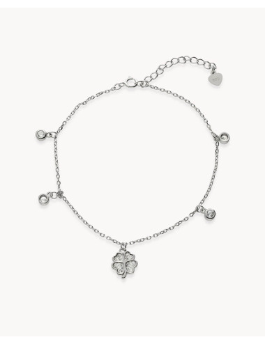 Tobillera trébol y circonitas de plata de ley 925 bañada en rodio